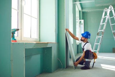 Constructie van scheidingswanden, verlaagde plafonds en andere structuren met gipsplaten.